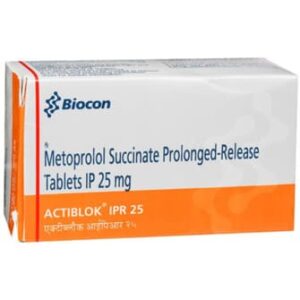 Actiblok IPR 25 Tablet 10’s contains ‘Metoprolol succinate’, which helps in slowing down the heart rate, making it easier for the heart to pump blood throughout the body. This lowers blood pressure and helps in reducing the risk of having a stroke, heart attack, or other heart or kidney problems in the future.