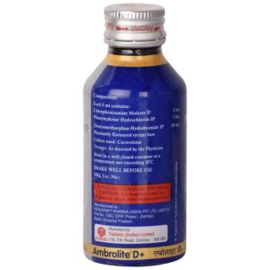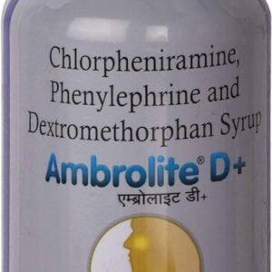Ambrolite D Plus Syrup is a combination of three medicines: Phenylephrine, Chlorpheniramine Maleate, and Dextromethorphan Hydrobromide. Phenylephrine is a decongestant which narrows the small blood vessels providing relief from congestion or stuffiness in the nose. Chlorpheniramine Maleate is an antiallergic which relieves allergy symptoms like runny nose, watery eyes and sneezing. Dextromethorphan Hydrobromide is a cough suppressant which relieves cough by reducing the activity of cough center in the brain.