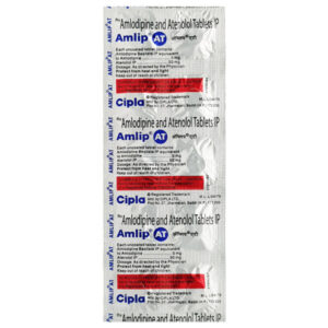 Amlip AT Tablet 10’s is a combination drug containing ‘anti-hypertensive’ drugs containing Amlodipine (a calcium channel blocker) and Atenolol (a beta-blocker) primarily taken for the treatment of hypertension (high blood pressure). Amlip AT Tablet 10’s reduces the heart’s workload making the heart more efficient at pumping blood throughout the body and relaxing and widening the blood vessel. Thus, it collectively helps lower high blood pressure, reducing the chances of heart attack or stroke.