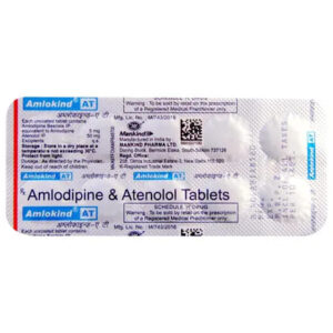 Amlokind AT Tablet 10’s belongs to a class of ‘anti-hypertensive’ medication primarily used to treat hypertension (high blood pressure). Hypertension (high blood pressure) is a lifelong or chronic condition in which the blood pressure against the artery walls becomes too high. This can lead to damaged blood vessels, heart disease, stroke, kidney disease, and other problems. Amlokind AT Tablet 10’s contains Amlodipine (a calcium channel blocker) and Atenolol (a beta-blocker). Amlodipine acts by relaxing and widening the constricted blood vessels. This ultimately reduces the heart’s workload and makes the heart more efficient at pumping blood throughout the body. Atenolol works by blocking stress hormones like adrenaline and epinephrine, thereby slowing down the increased heart rate. Thus, it helps lower raised blood pressure, reducing the chances of heart attack or stroke in the future.