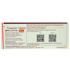 Brilinta 90 mg Tablet 14’s is an antiplatelet (blood thinner) and plays a vital role in preventing the formation of harmful blood clots in your blood vessels. Brilinta 90 mg Tablet 14’s work by preventing platelets from sticking together, thereby decreasing the formation of harmful blood clots. Thus, it reduces the risk of heart attack, stroke, and acute coronary syndrome (heart doesn’t receive enough oxygen or blood) in heart disease patients and patients who have undergone recent heart surgery with a stent.