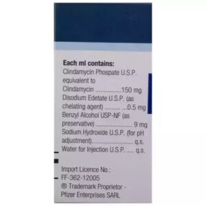 Dalacin C 600 mg Injection 4 ml contains ‘Clindamycin’ that works by preventing bacterial protein synthesis, leading to the inhibition of bacterial growth. It shows a bacteriostatic effect that stops bacterial reproduction. Dalacin C 600 mg Injection 4 ml effectively treats infections caused by gram-positive and anaerobic (living without air) bacteria, including susceptible strains of Staphylococcus aureus, Streptococcus pneumoniae, and Clostridium perfringens.