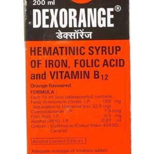 Dexorange Syrup 200 ml belongs to the group of medicines called nutritional supplements used to treat and prevent nutritional deficiencies such as iron deficiency, anaemia, and folic acid deficiency. A nutritional deficiency occurs when the body does not absorb or get enough nutrients from food. Vitamins and minerals are necessary for body development and the prevention of diseases.
