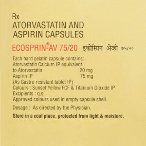 Ecosprin-AV Capsule is a combination of two medicines: Atorvastatin and Aspirin, which prevents heart attack and stroke.