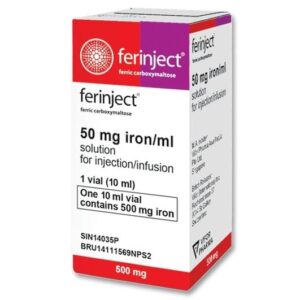 Ferinject Injection 20 ml belongs to the group of anti-anaemic medicines used to treat iron deficiency anaemia in patients who are intolerant to oral iron preparations, have non-dialysis dependant chronic kidney disease, or require a quick build-up of iron stores. Iron deficiency anaemia (lack of red blood cells caused by too little iron in the body) is a condition in which the body does not have enough red blood cells for carrying adequate oxygen to various body tissues.