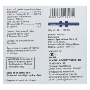 Generic Name: Calcitriol 0.25mcg+Calcium Carbonate 500mg+Zinc Sulfate 7.5mg