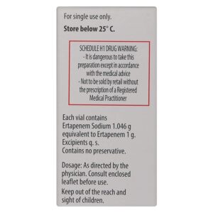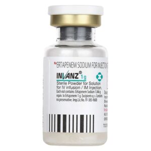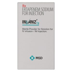 Invanz 1gm Injection 1’s belongs to a class of medications called ‘antibiotics’ used to treat bacterial infections. It can be used to treat intra-abdominal (stomach) infections, skin infections such as diabetic foot infections, community-acquired pneumonia (lung infection), and acute (short-term) gynaecological infections such as urinary tract infections and pelvic infections. It is also used to prevent surgical site infections in patients who have undergone surgery on the colon or rectum.